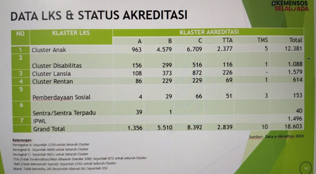Salah satu poin yang menjadi perhatian peserta adalah pengetatan syarat akreditasi LKS. Dalam materi kebijakan akreditasi, disampaikan bahwa akreditasi tidak hanya bersifat administratif, tetapi menjadi proses pembelajaran untuk memastikan standar pelayanan minimal terpenuhi. Dalam konteks penguatan SDM lembaga, kelengkapan persyaratan kesehatan dan integritas pengelola serta pelaksana layanan, termasuk hasil cek laboratorium bebas narkoba, disampaikan sebagai bagian dari upaya menjaga profesionalisme, keamanan layanan, dan kepercayaan publik terhadap LKS.