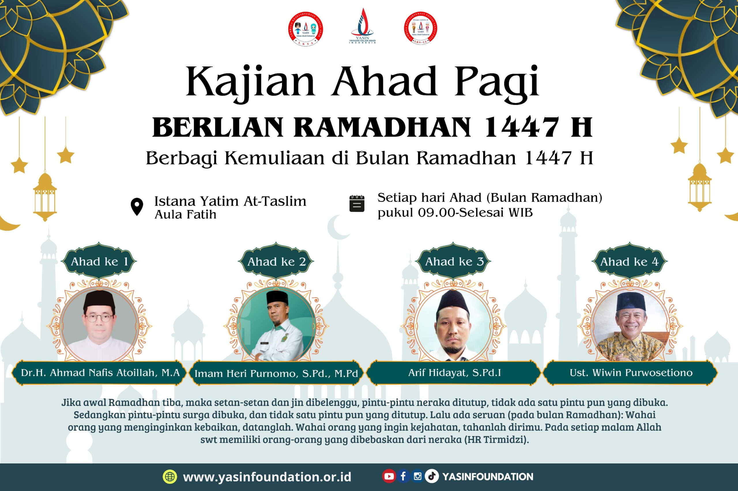 Banjarnegara-sinnewsbara.com Jama'ah Kajian Akbar Ahad pagi Pekan 2, Ranadhan Karim Keren. Istana yatim, 09 maret 2025 bertepatan 09 Ramadhan 1446